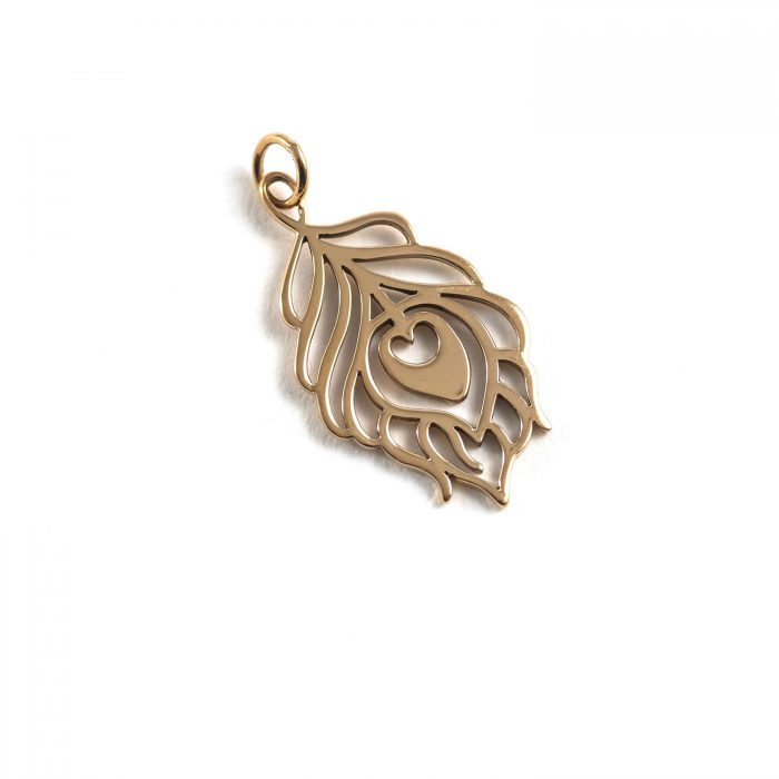 This bronze peacock feather charm has a 5mm closed ring.