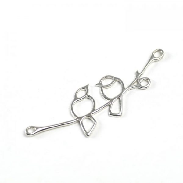 This sterling silver lovebirds connector has 3 loops for connecting other items.